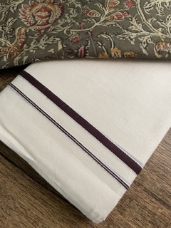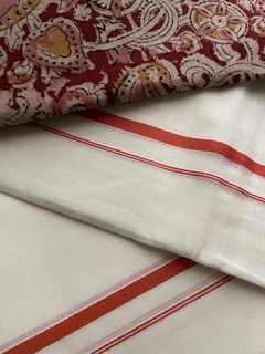Our name is inspired by the traditional Kerala outfit – Mundum Neriyathum, which consists of two pieces of fabric, usually white or off white/cream in colour, with a coloured strip running through the border known as the “kara”.
